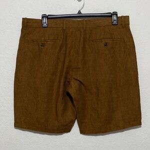 Mango “NEW” 100% Linen Brown Flat Front Bermuda Shorts With Pockets Size 38
