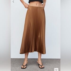 Mango NEW pleated satin minimalist midi skirt with elastic waistband