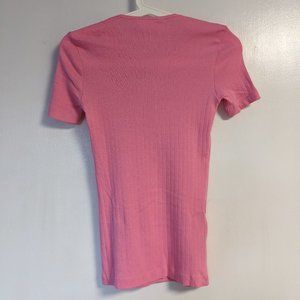 Cute Mango bubblegum pink 100% cotton t-shirt XXS. New with tags. Would love to keep it but it's too small for me. The approximate measurements laying flat: top shoulder to bottom is 23.5-24 inches, armpit to armpit is 12.5 inches.