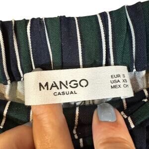 Mango Navy Blue & Green Striped Casual Lounge Relaxed Pants Women Sz XS