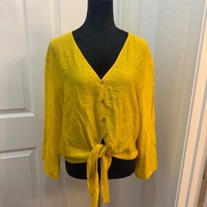 Mango blouse | oversized blouse | v-neck top | flared sleeve blouse | women’s size 6 top | flowy shirt | button front blouse | tie waist blouse | minimalist style | modern chic | office to casual wear