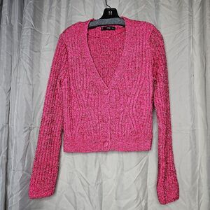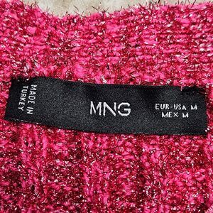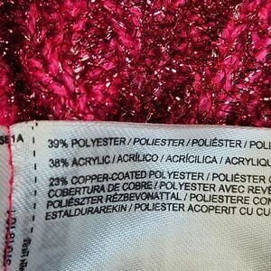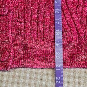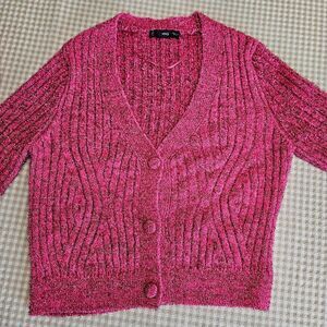 Mango Pink Fuchsia Metallic Cable Knit Long Sleeve Festive Chic Cropped Sweater