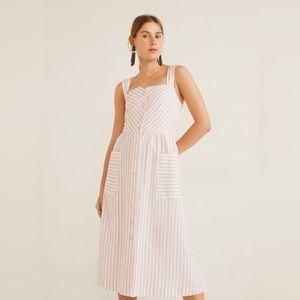 Mango Pink Sundress Sleeveless Square Neck Midi