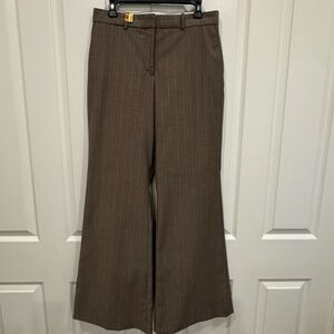 Workplace-ready pants feature timeless pinstripes and trendy floor-grazing flared legs.