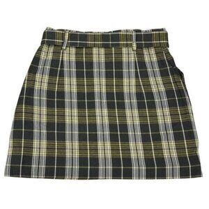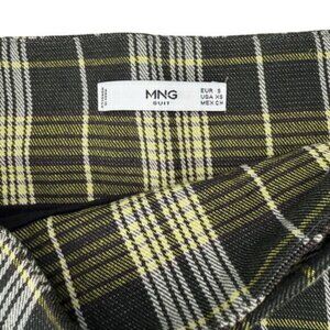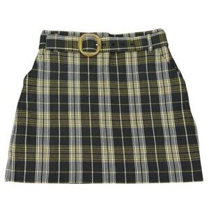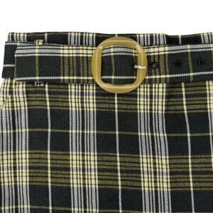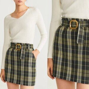 MANGO Plaid Belted Mini Skirt Sz XS Green Yellow