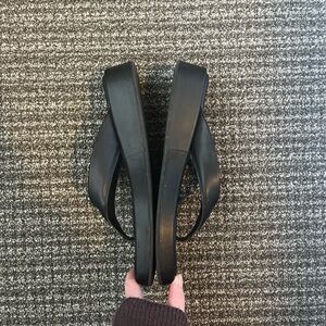 Mango black leather platform flip flops.
