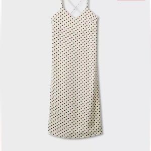 Mango Polka-dot satin-finish dress size 2 cream with brown spots
