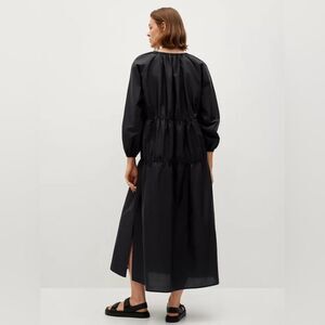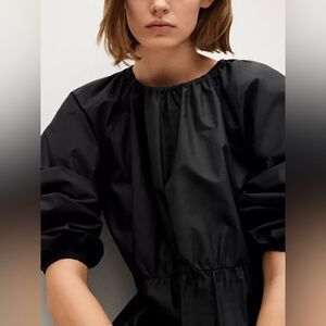 Mango Poplin Cotton Black A-Line Puff Sleeve Dress