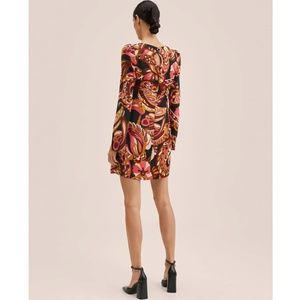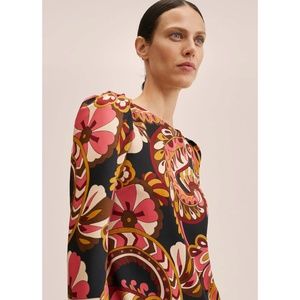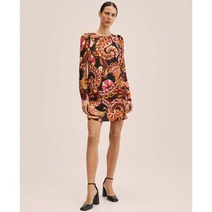 Mango Printed Paisley Abstract Dress Balloon Sleeves Size 4