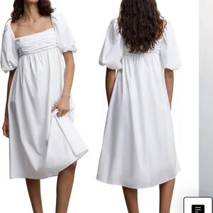 Mango Puff Sleeve Cotton Poplin midi Dress white size 8/large cottage core
