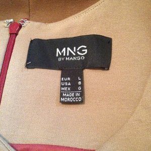 Mango Red and Tan Colorblock Midi Dress