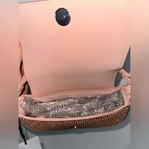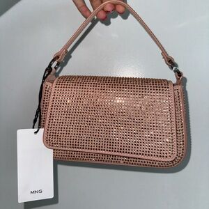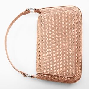 Small. Strass design. Short strap. Long detachable chain strap. Flap closure with magnetic button. Inner lining. Party and events collection.