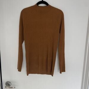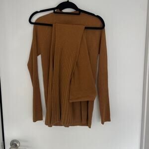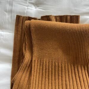 Mango Ribbed Knit Set | Mock Neck Top XS + Flare Pants S | Burnt Orange / Brown Matching Lounge Set | Two-Piece Outfit