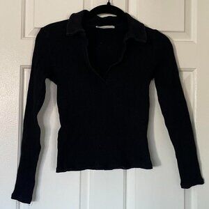 Mango ribbed knit long sleeve polo top in black. Size XXS, great condition.