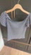 Mango Ribbed Navy & White Off-Shoulder Flutter sleeve Top • size small