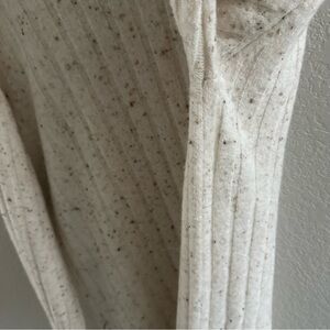Thick knitted fabric. Rib knit fabric. Wool mix fabric. Long design. Straight design. Flecked design. Rolled neck. Long sleeve.