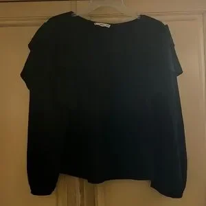 Mango Blouse Textured, 3/4 sleeves, Ruffle design, rounded neck. Pre-worn and in awesome condition!