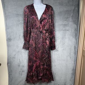 Mango Ruffled Paisley Print Evasé Dress Size US 4 Boho Chic Flowy Mid Lslv M