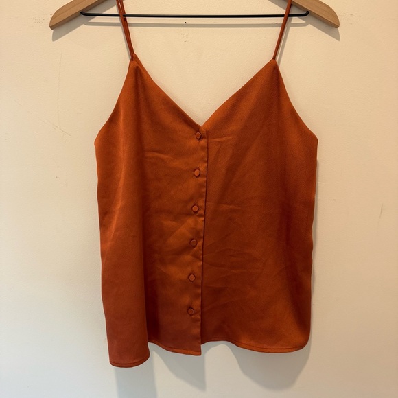 Stylish rust camisole by Mango. Features a front button design. Perfect for layering.