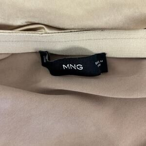 Mango Satin Midi Slip Skirt Champagne High Rise Elastic Waistband Medium