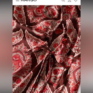 Mango Satin Paisley Print Shirt Dress Wrap Midi Size 6 Burgundy Red Coastal Boho