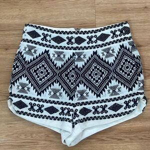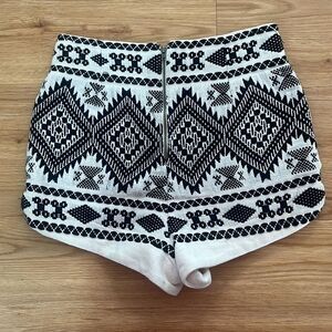 Black/white knit shorts with an inside lining and a zipper the in back