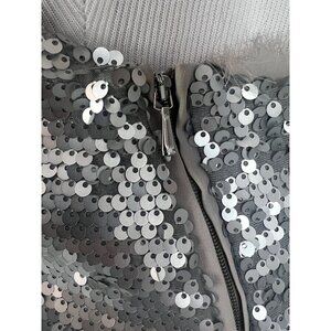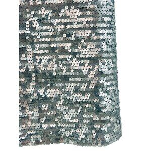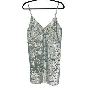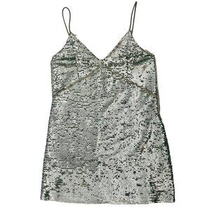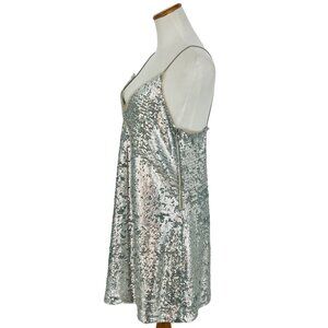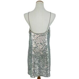 Mango Silver Sequin & Mesh Trim V-Neck Spaghetti Strap Mini Party Cocktail Dress