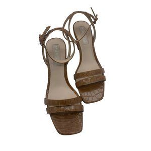 Mango Size 39 (US 8) Brown Faux Leather Chunky Heel Sandals Square Toe.