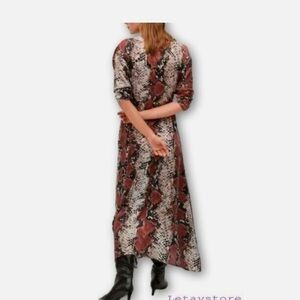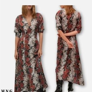 Mango Snake Print Long Sleeve V Neck Button Front Maxi Dress 4 size Small