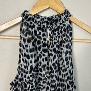 Mango Spotted Leopard Chiffon High Neck Sleeveless Blouse Size XS