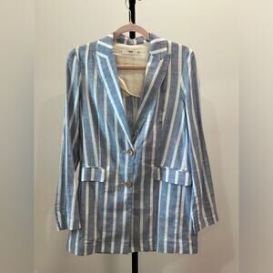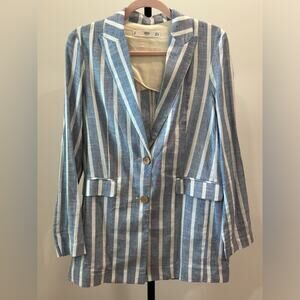 Double breasted linen blazer size xs, blue and white stripes. Size XS. Never worn. Gorgeous fabric and the fit is amazing.
