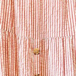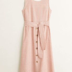 This pink & white striped Mango midi dress is so darling and classic! With pockets, buttons, cross-back, and a waist tie, this dress is perfect for all your spring and summer occasions. Worn 3 times, maximum and in like-new condition.