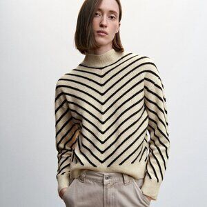 Mango Stripe-print sweater with Perkins neck - XS