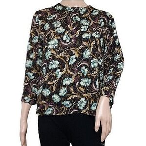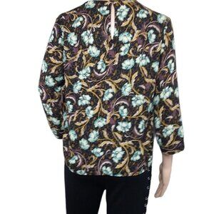 MNG SUIT Mango Suit Leaf Blue Brown Floral Blouse Autumn Fall