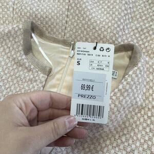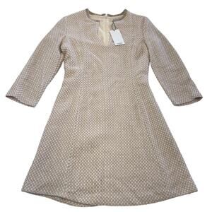 Mango Suit Dress Womens Small US 4 Beige Pink Tweed A-Line 3/4 Sleeve Lined