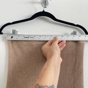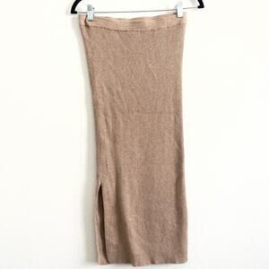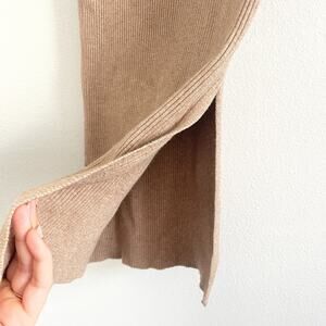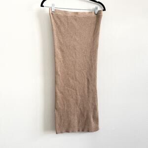 Mango Sweater Skirt Women M Tan Ribbed Knit Midi Bodycon Classic Minimalist