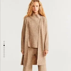 Mango Tan Ribbed Sweater Set