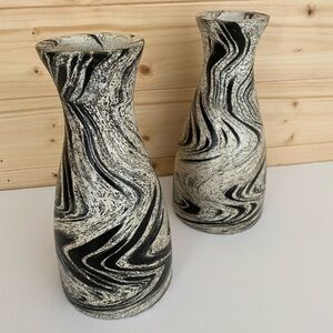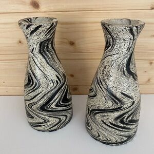 Mango Tree Wood White & Black Stain Bottled Shaped Decorative Flower Vase - 2PC