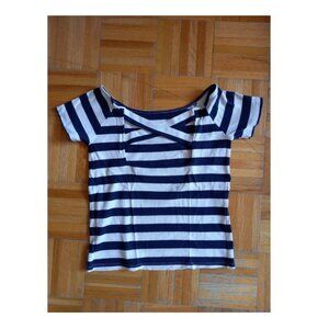 Mango Tshirt Blouse with cross back design_ XXS_ Navy with white stripes