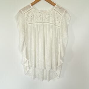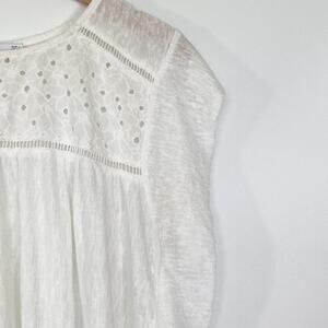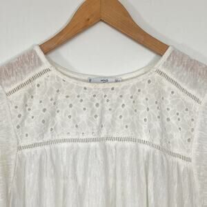 Mango White Openwork Eyelet Panel Knit T-shirt Top Blouse