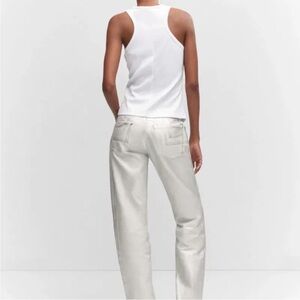 Soft ribbed knit halter top by Mango. Fitted silhouette with sleeveless halter neckline. Smooth, stretchy fabric for easy wear.