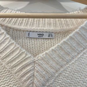 Mango White V-Neck Sweater