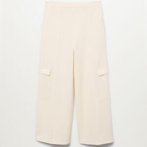 Fabric with cotton. Wide design. Wide-leg design. High waist. Elastic waist. Two side pockets with flaps.