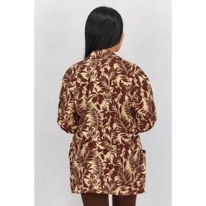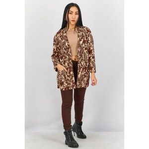Care Machine washable Fit Regular fit Ideal For Women Size shown US Types of Neckline & Collar Notched collar Types of Sleeve Longsleeve Disclaimer Product color may slightly vary due to photographic lighting sources or your monitor settings. Fabrics 75% Viscose, 25% Linen Occasion Casual Pattern & Print Allover print Types of Closures Open front Color Family Brown