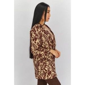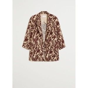 Mango Women Notch Collar Long Sleeves Tropic Print Linen Blazer, Beige Brown XS