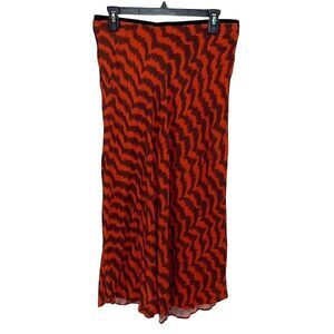 Mango Womens Animal Print Elastic Waist Flowy Midi Skirt Red Orange Black Size L-XL NWOT