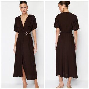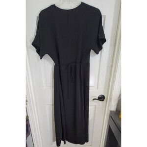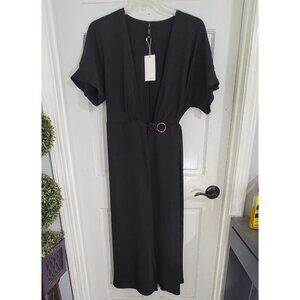 Mango Women's Black Midi Wrap Dress Hoop Detail Short Sleeve V Neck Size 6 /M NWT