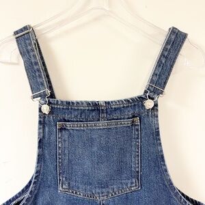Mango dark wash adjustable strap denim overall skirt with pockets, mid thigh length, relaxed fit, Y2K