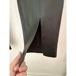 Mango Womens Leather Effect Pants M Straight Leg Front Slit Goth Grunge *READ