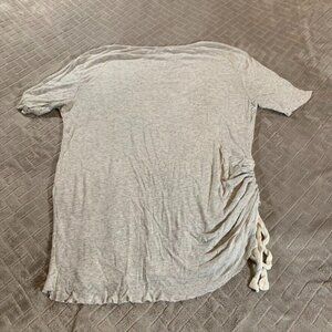 Mango Womens Small T Shirt Blouse Gray Rib Knit Short Sleeve Ruched Stretch. No stains or holes.
